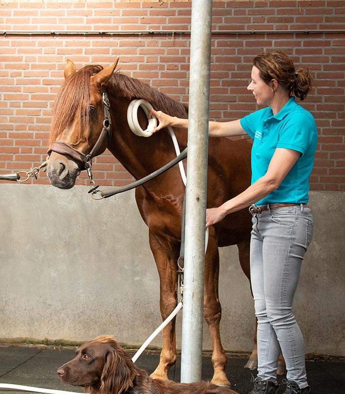 Dit versnelt de genezing van overbelaste weefsels, geeft vermindering van pijn en heeft een positief effect op het immuunsysteem. Bovendien worden de bindweefsels en gewrichten losgemaakt en spierspanning verminderd waardoor het paard soepeler en makkelijker gaat bewegen.